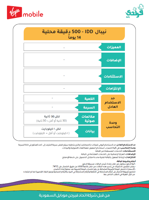 | | 30 ريال | 34.50 ريال | 500 دقيقة | 14 أيام | |