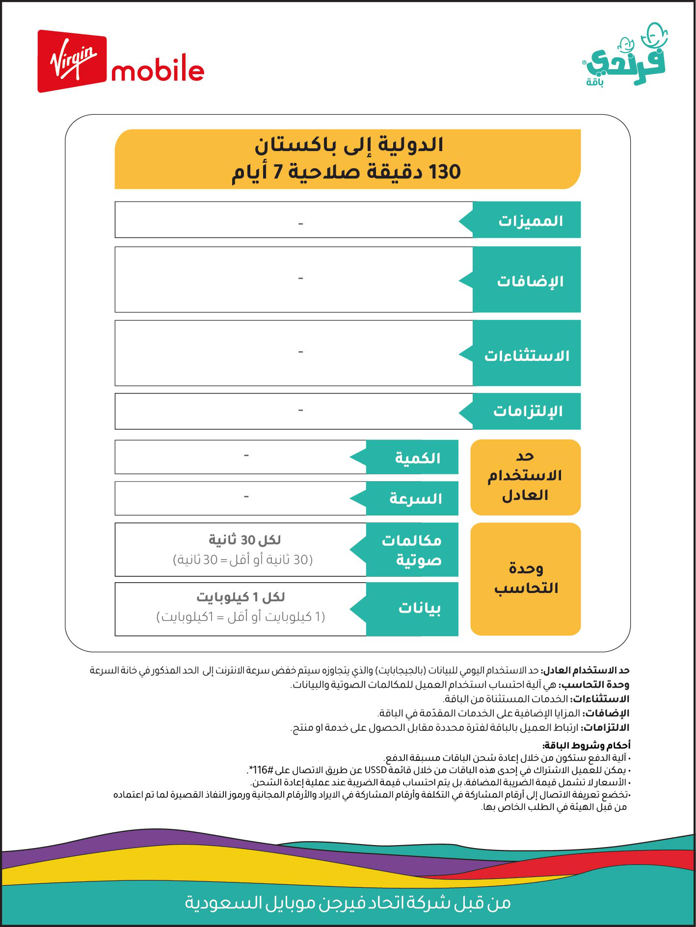 | 39.99 ريال | ريال | 2.5+1 جيجابايت | 30 أيام | |