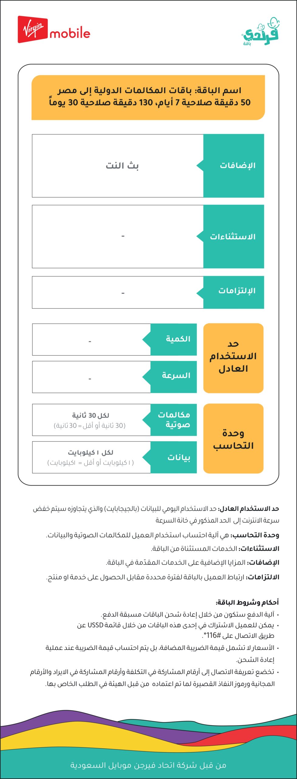 | 25.00 ريال | 25.00 ريال | مكالمات داخل الشبكة غير محدودة | 30أيام |